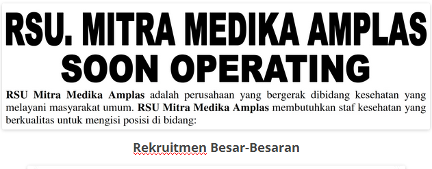 Berita Lowongan Kerja RS Mitra Medika 18 Januari 2017 / Rekruitmen Besar-Besaran Untuk PERSYARATAN dari masing-masing Posisi Silahkan klik link berikut : LOKER RS MITRA MEDIKA AMPLAS